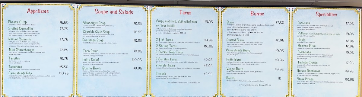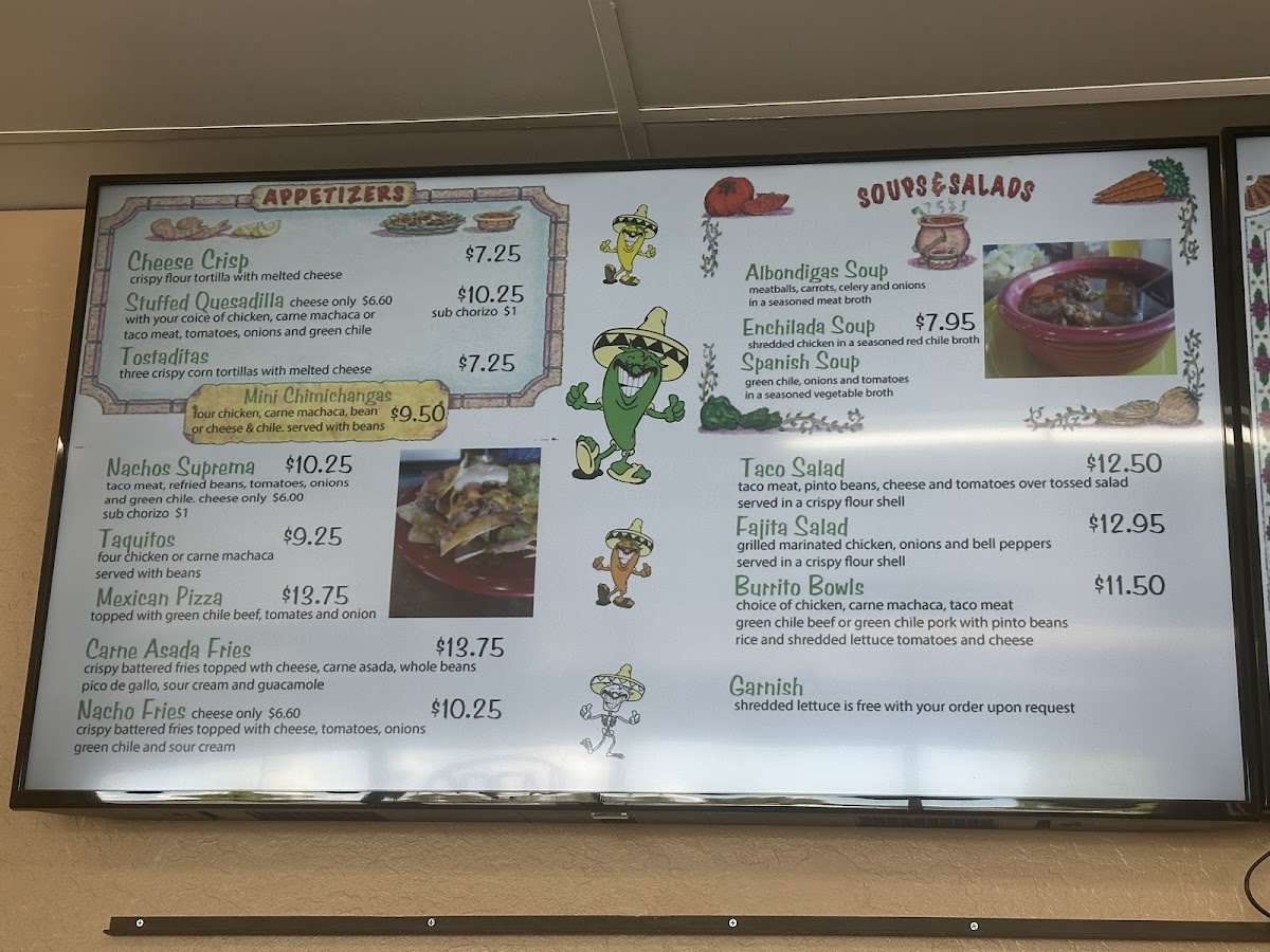 With your choice of chicken, carne machaca, taco meat, green chile beef or green chile pork.